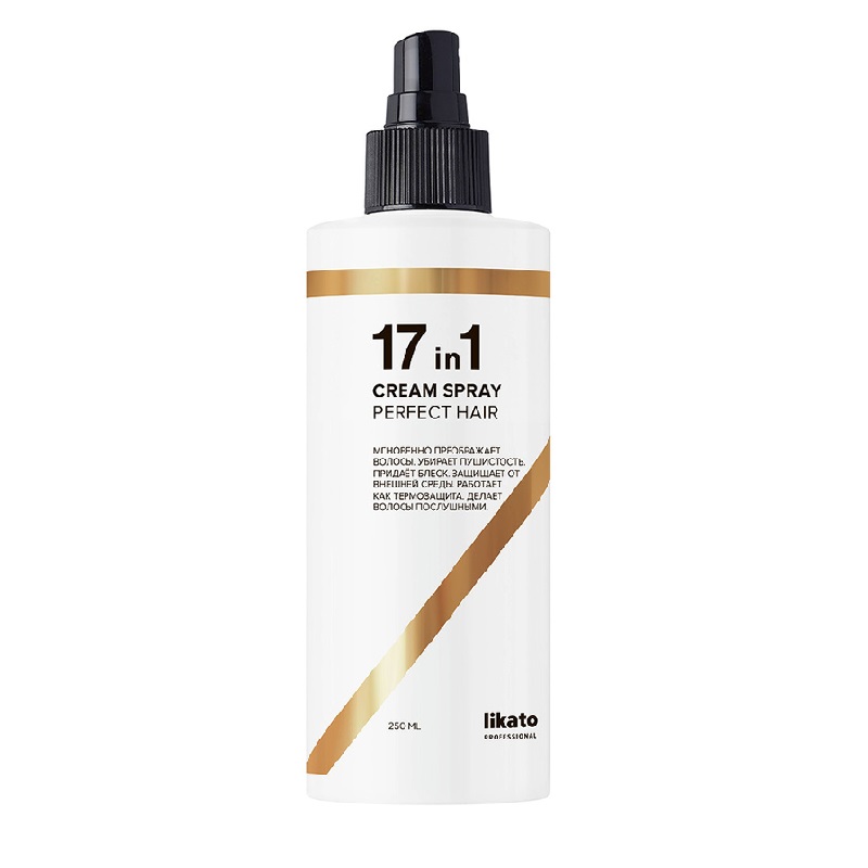 Сбились со счета от количества ваших уходовых средств? А что если заменить большинство из них всего на один флакон? Средство 17в1 от Likato Professional справится с этой задачей легко! Спрей для идеальных волос бережно охраняет локоны от повреждений. Его компоненты помогают распутать непослушные пряди и устранить их пушистость. Благодаря кератину и коллагену, спрей увлажняет и питает тонкие волосы, наполняя их силой и блеском. Именно кератин помогает удержать влагу и разглаживает. Масло ши устраняет сухость волос, защищает от солнца. А коллаген – от ломкости и секущихся кончиков.