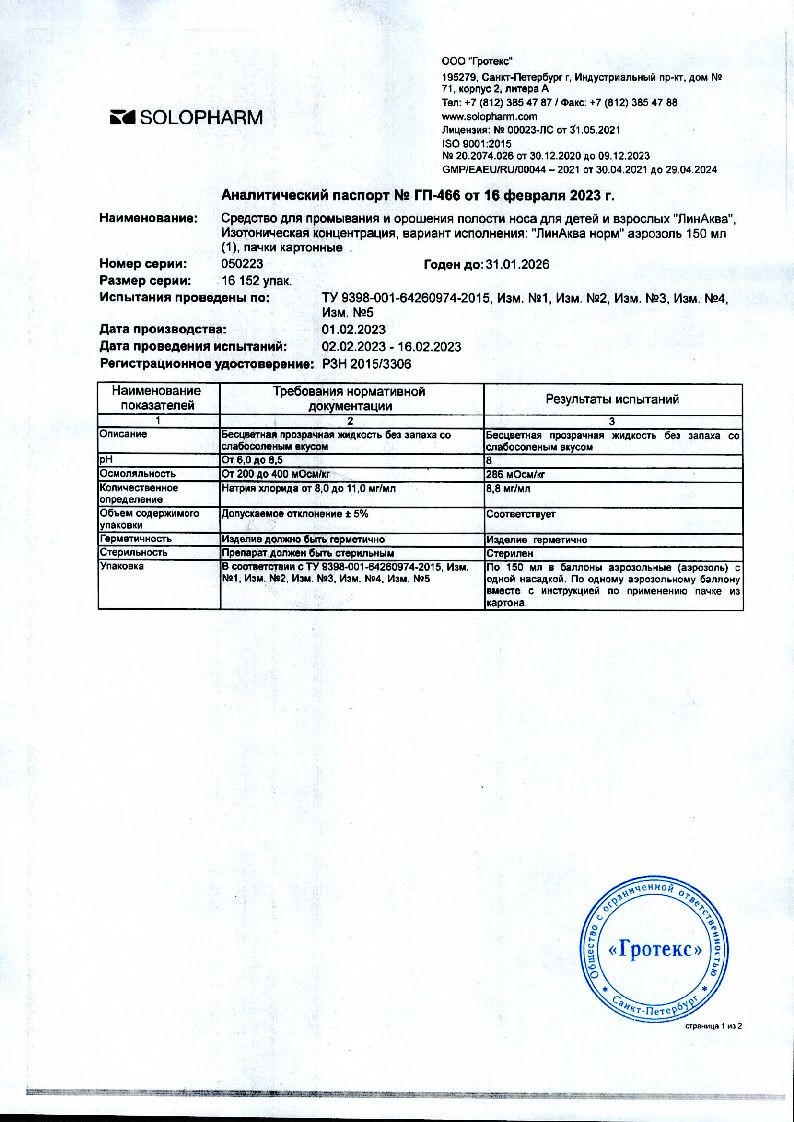 Средство для промывания и орошения полости носа для детей и взрослых ЛинАква Норм (далее - Средство).
