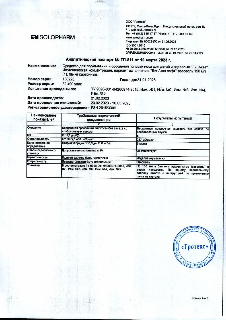 Средство для промывания и орошения полости носа для детей и взрослых ЛинАква софт (далее - Средство).