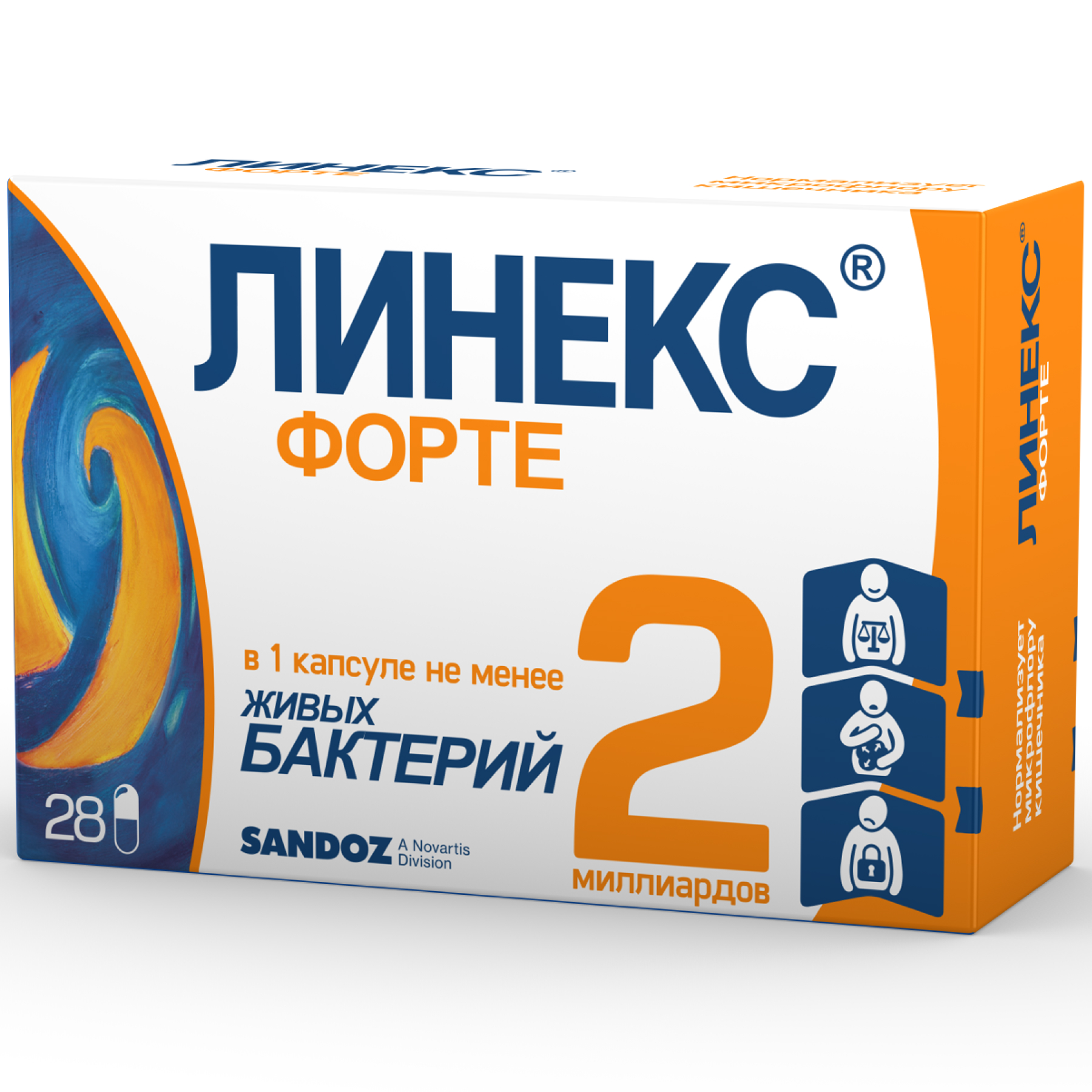 Длительность лечения зависит от причины развития дисбактериоза и индивидуальных особенностей организма. Препарат Линекс® Форте можно принимать до исчезновения симптомов дисбактериоза.