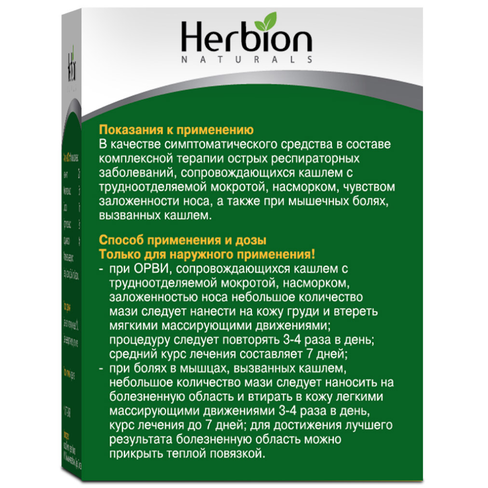 при ОРВИ, сопровождающихся кашлем с трудноотделяемой мокротой, насморком, заложенностью носа небольшое количество мази следует нанести на кожу груди и втереть мягкими массирующими движениями; процедуру следует повторять 3-4 раза в день; средний курс лечения составляет 7 дней;