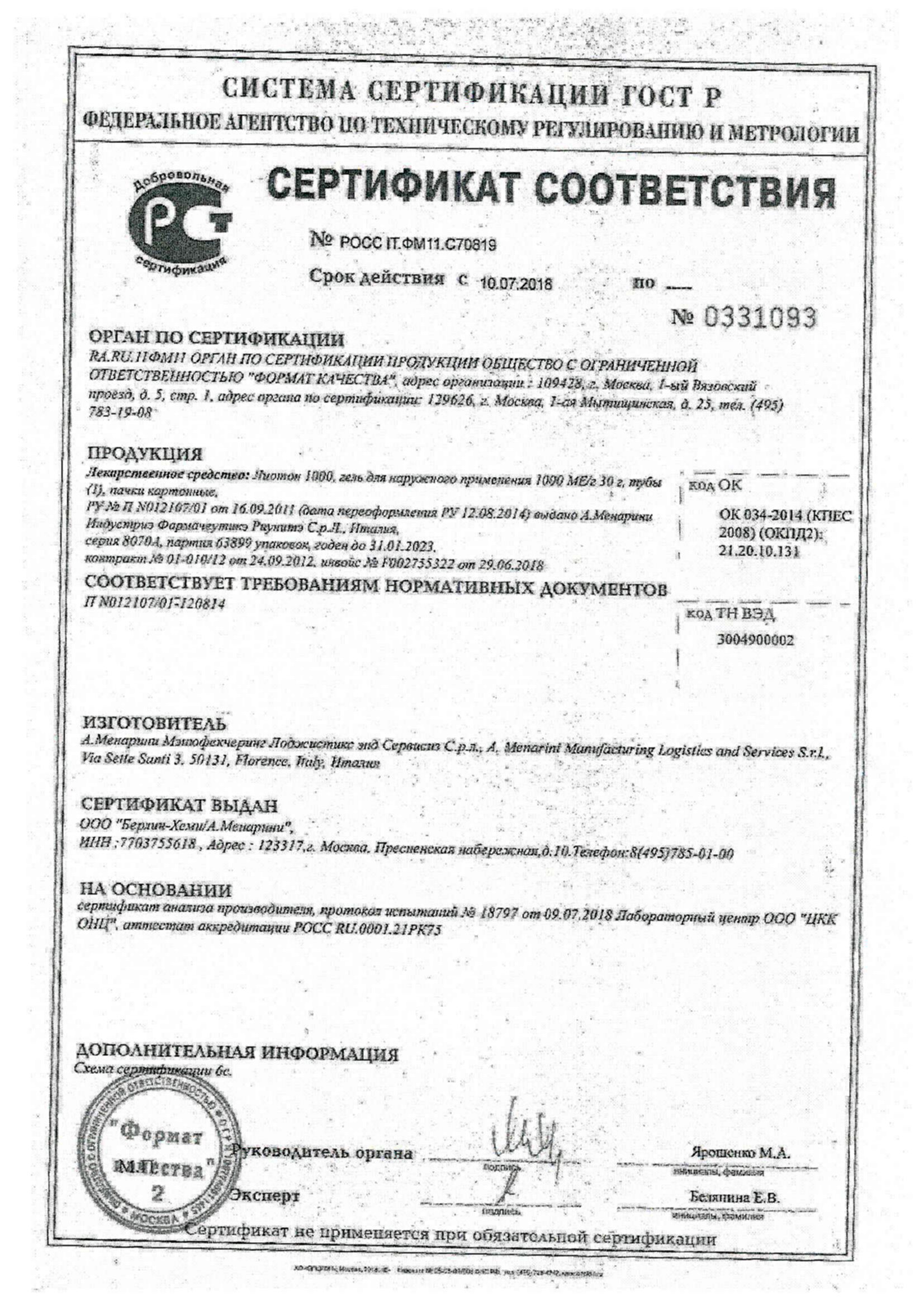 Препарат для наружного применения, содержащий гепарин натрия не рекомендуется смешивать с другими средствами для наружного применения.