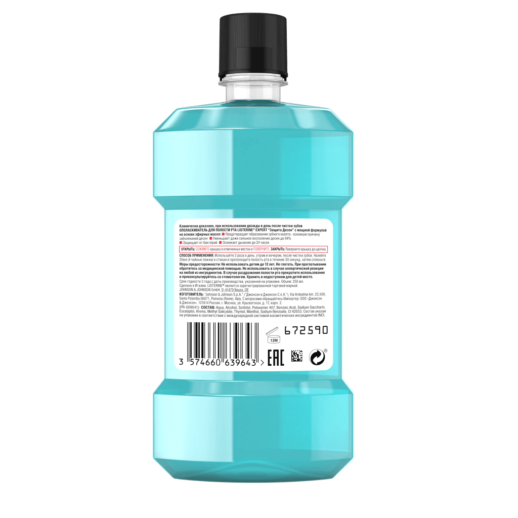 Преимущества: LISTERINE – это не содержащий спирта ополаскиватель для полости рта, который поддерживает здоровье всей полости рта благодаря 6 полезным свойствам. Обеспечивает уменьшение зубного налета. Поддерживает здоровье десен. Защита от кариеса. Содержит фтор, который укрепляет эмаль и делает ее более устойчивой к кариесу. Сохранение белизны зубов. Помогает предотвратить образование зубного камня, сохраняя естественную белизну зубов. Борется с бактериями, из-за которых появляется налет на зубах и проблемы с деснами. Свежее дыхание. Обеспечивает длительную защиту от неприятного запаха во рту.