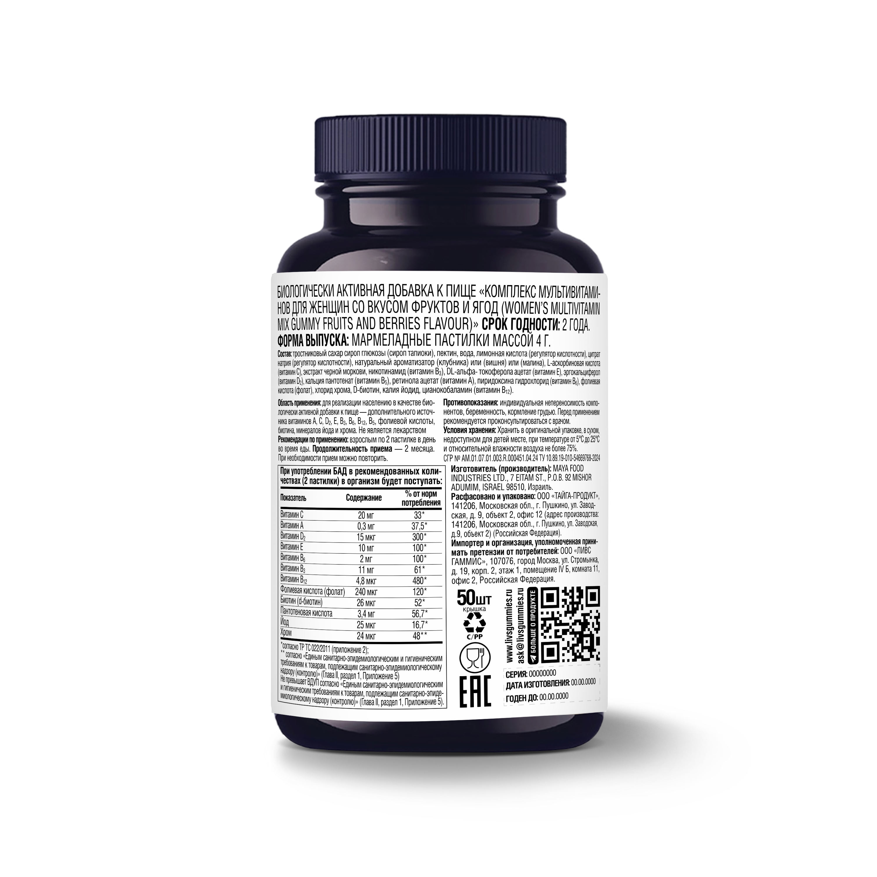 Вкусный витаминно-минеральный комплекс для женщин содержит незаменимые нутриенты для активации иммунитета, заряда бодрости и поддержания красоты. Проходит строжайший контроль качества и соответствует международным стандартам: FDA, GMP, ISO, HACCP.