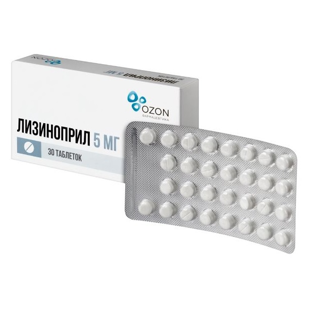 Действующее вещество: лизиноприла дигидрат - 5,44 мг, в пересчете на лизиноприл 5,00 мг.