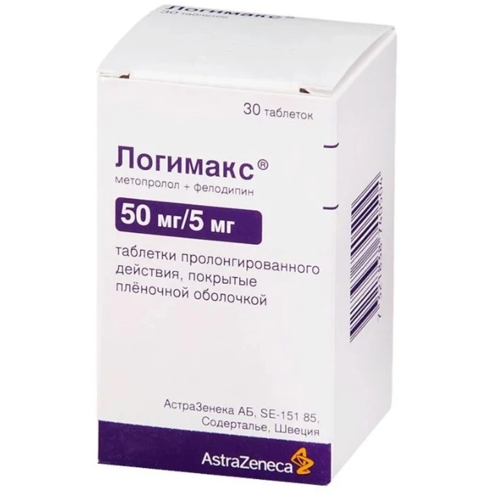 Взаимодополняющий механизм действия фелодипина, снижающего ОПСС, и метопролола, уменьшающего сердечный выброс, приводит к более выраженному антигипертензивному эффекту и лучшей переносимости по сравнению с монотерапией фелодипином и метопрололом. При приеме Логимакса снижение АД стабильно и эффективно в течение всего интервала между приемами доз (24 ч).