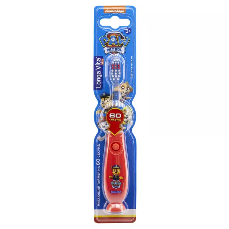 Зубная щетка с мигающим таймером разработана для детей от 3-х лет. Таймер работает 60 секунд, что помогает ребенку определить время, необходимое для чистки зубов одного зубного ряда.