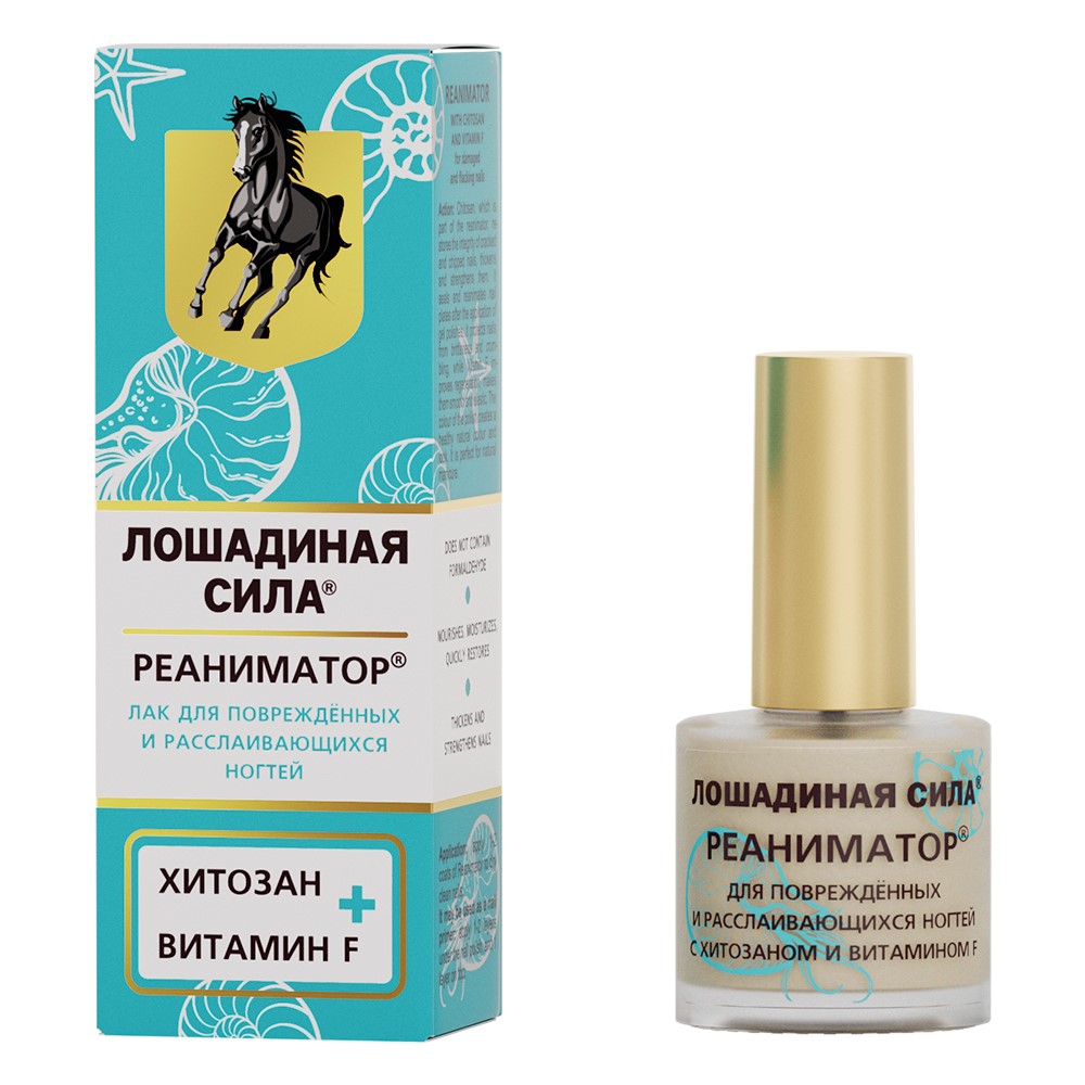 Лошадиная сила Реаниматор для поврежденных и расслаивающихся ногтей с хитозаном и витамином F - прозрачная жидкость