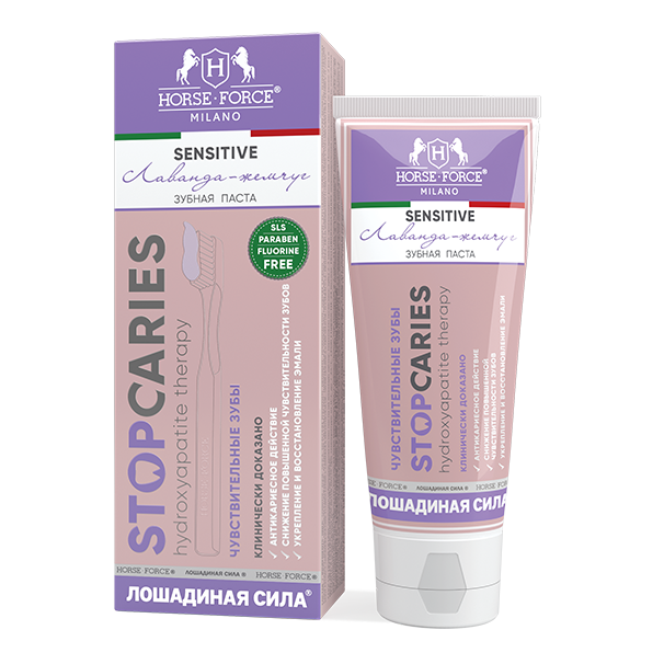 - Гидроксиапатит (Hydroxyapatite) — источник природного биоактивного кальция и фосфора. Усиленная концентрация компонента снижает повышенную чувствительность зубов при оголении дентинных канальцев и истонченном слое эмали. Оказывает эффект микропломбирования, заполняя повреждённые участки и микротрещины на поверхности эмали, уплотняет открытый дентин и делает эмаль более гладкой и блестящей.