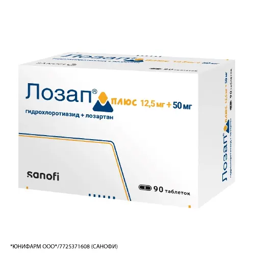Лозап Плюс 12,5 мг + 50 мг 90 шт таблетки покрытые пленочной оболочкой (арт. 10060569) купить по цене 1 026 ₽ в интернет аптеке в Москве и Московской области — Aptstore