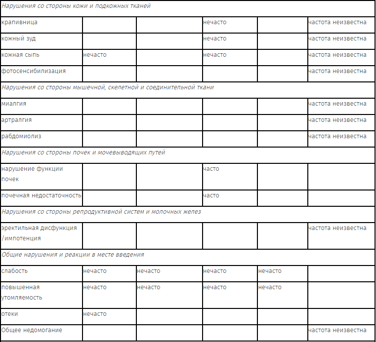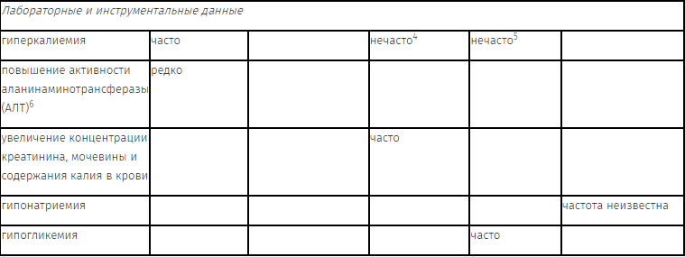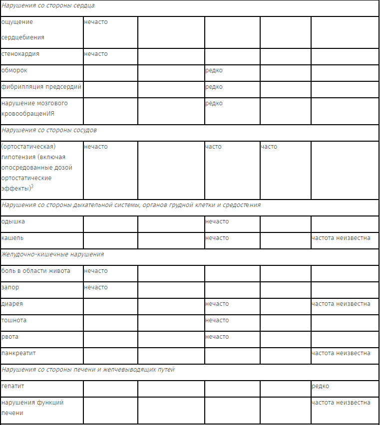 Частота нежелательных явлений (НЯ), указанных ниже, приведена в соответствии со следующей классификацией: очень часто (≥ 10%); часто (≥ 1% и < 10%); нечасто (≥ 0,1% и < 1%); редко (≥ 0,01% и < 0,1%); очень редко (< 0,01%); частота неизвестна (невозможно оценить частоту на основании доступных данных).