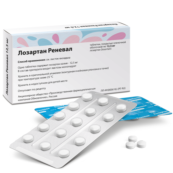 Лозартан Реневал, 12,5 мг, таблетки, покрытые пленочной оболочкой