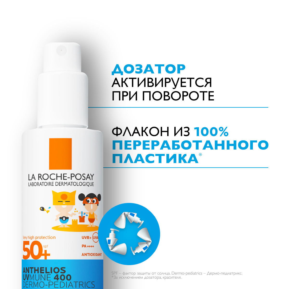 Невидимый солнцезащитный детский спрей для лица и тела Антгелиос UVMUNE 400 - результат более 10 лет исследований. Первый фильтр среди продуктов La Roche-Posay, защищающий от ультрадлинных УФ-лучей. Очень высокая степень защиты от широкого спектра UV-лучей. Специально разработанная формула для нежной и чувствительной кожи детей. Подходит для кожи, склонной к атопии. Легкая, невидимая на коже текстура. Не оставляет белых следов. Без отдушки. Рекомендовано дерматологами и педиатрами. Протестировано на чувствительной детской коже и коже, склонной к аллергии на солнце. Гипоаллергенная формула. Протестировано под дерматологическим и педиатрическим контролем.