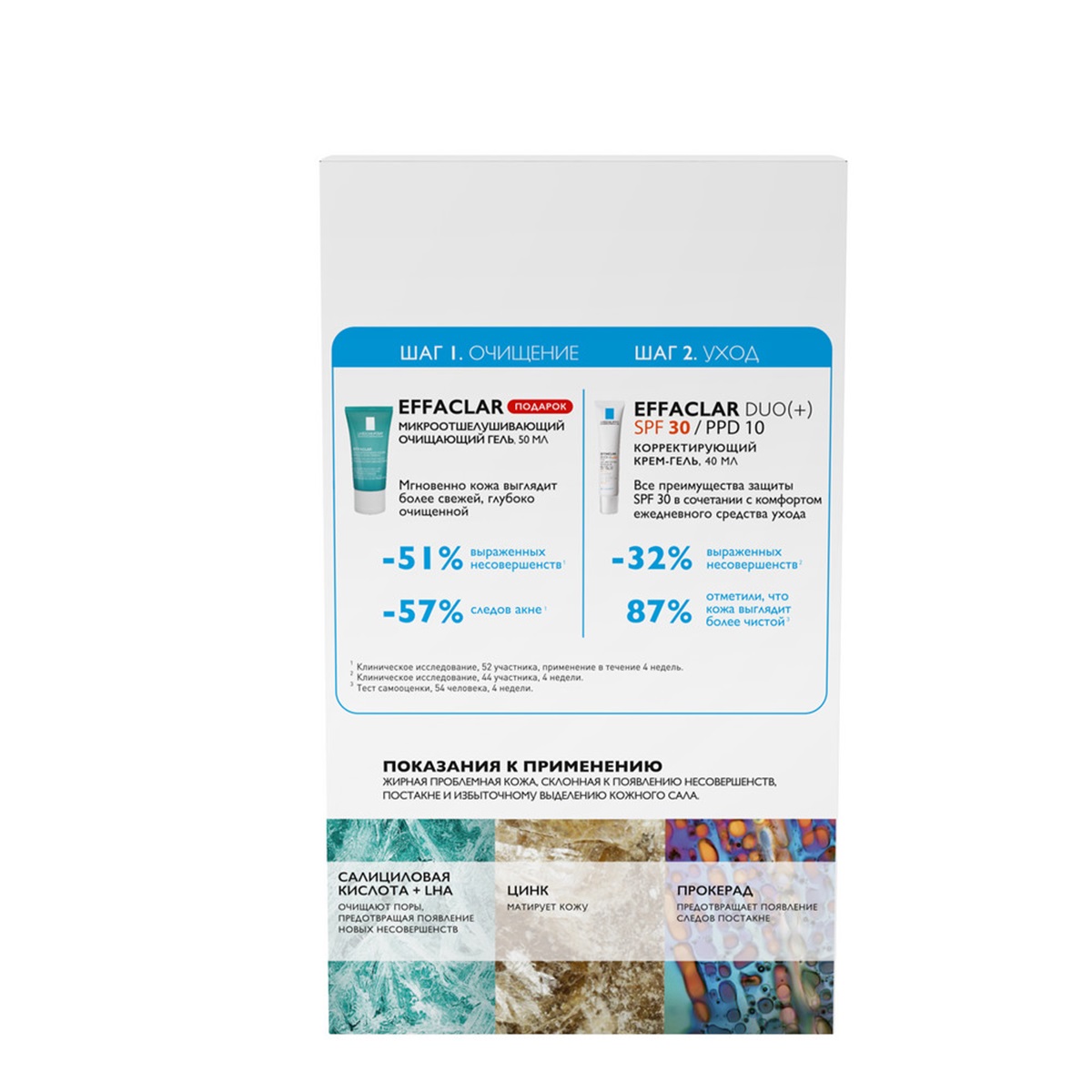 Микроотшелушивающий гель: aqua / water, sodium laureth sulfate, decyl glucoside, glycerin, sodium chloride, coco-betaine, salicylic acid, peg-150 pentaerythrityl tetrastearate, peg-6 caprylic/capric glycerides, zinc gluconate, sodium hydroxide, capryloyl salicylic acid, tetrasodium edta, citric acid, menthol, polyquaternium-47, hexylene glycol, sodium benzoate.