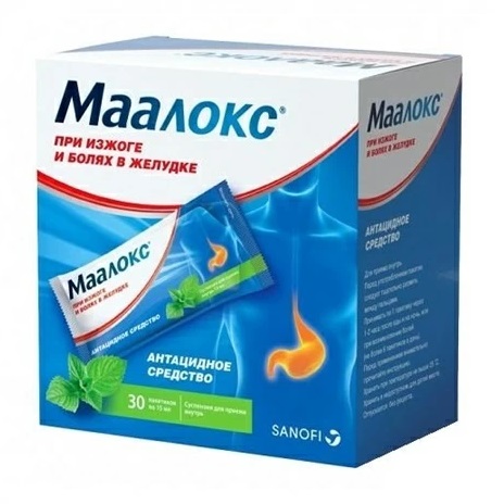 Маалокс® принимают по 1 пакетику с суспензией (15 мл) обычно через 1-2 ч после еды и на ночь, а также при возникновении болей в эпигастрии или изжоги. Суточная доза не должна превышать 6 пакетиков (90 мл суспензии в сутки).