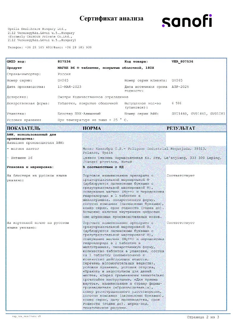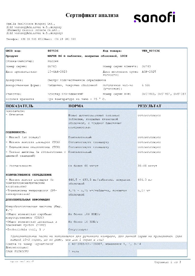 Действующие вещества: магния лактата дигидрат - 470 мг (эквивалентно содержанию магния (Mg++) 48 мг); пиридоксина гидрохлорид - 5 мг;