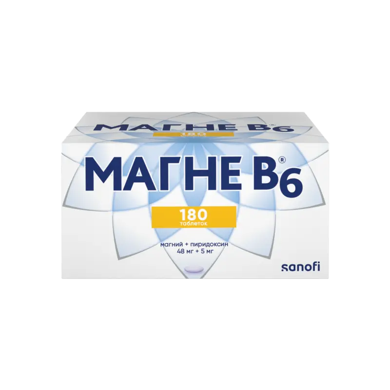 Пиридоксин (витамин В6) участвует во многих метаболических процессах, в регуляции метаболизма нервной системы. Витамин В6 улучшает всасывание магния из ЖКТ и его проникновение в клетки.