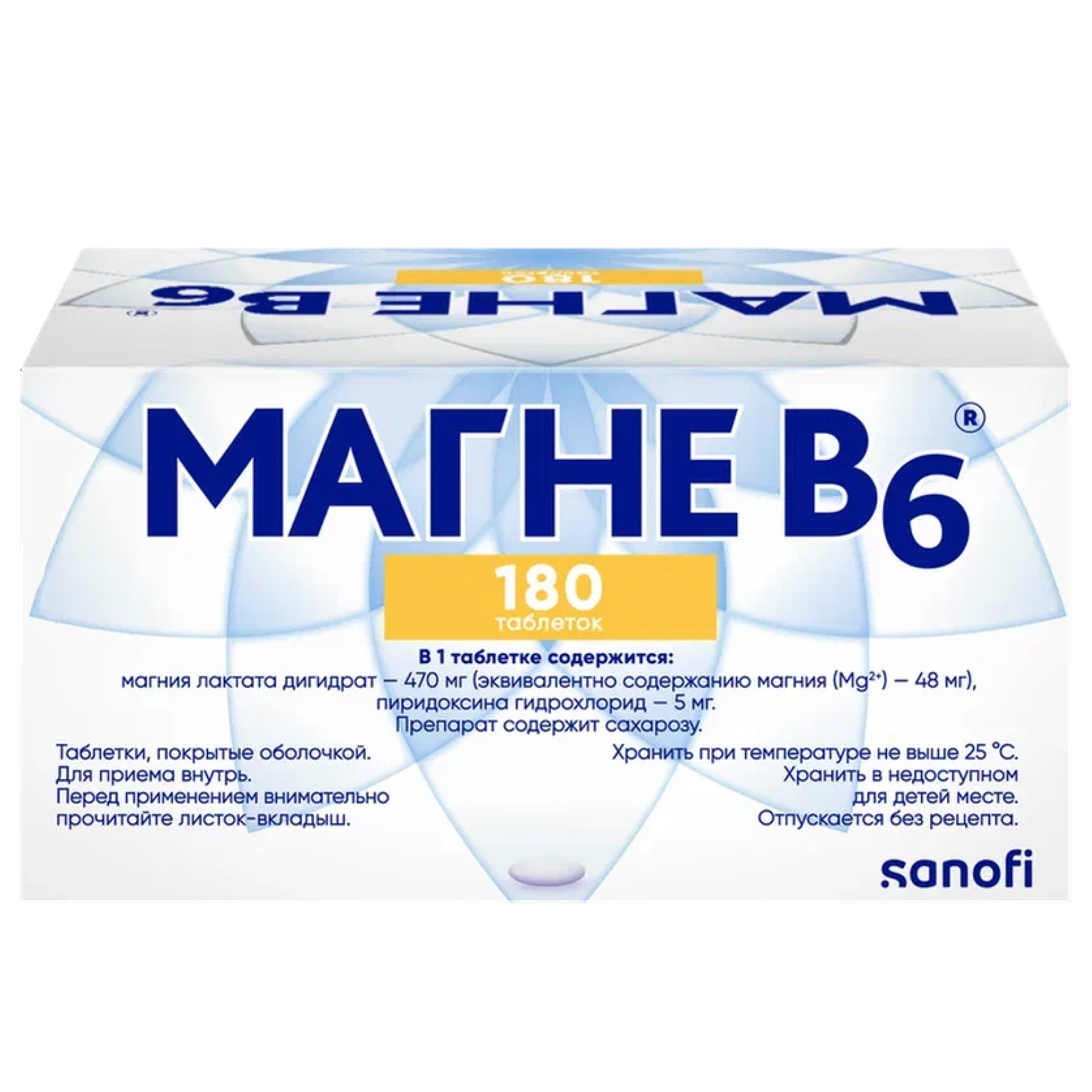 Действующие вещества: магния лактата дигидрат - 470 мг (эквивалентно содержанию магния (Mg++) 48 мг); пиридоксина гидрохлорид - 5 мг;