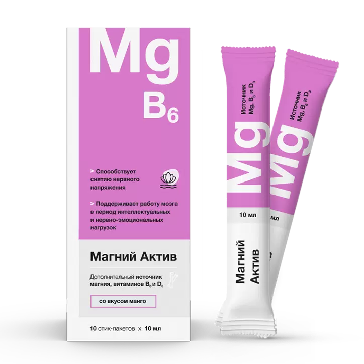 Вода очищенная, магния бисглицинат, лимонная кислота (Е330, регулятор кислотности), сорбат калия (Е202, консервант), витамин D3 (холекальциферол), витамин В6 (пиридоксина гидрохлорид), аспартам (Е951, подсластитель), ароматизатор пищевой манго.