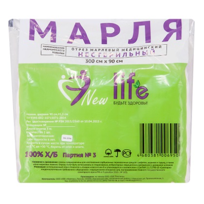 Марля медицинская представляет собой лёгкую, гигроскопичную хлопчатобумажную ткань простого полотняного плетения, вырабатывается специально для медицинских целей, как основа для перевязочного материала, для ватно-марлевых повязок (бинты, салфетки, повязки, тампоны, маски) предостерегающих от инфекций.