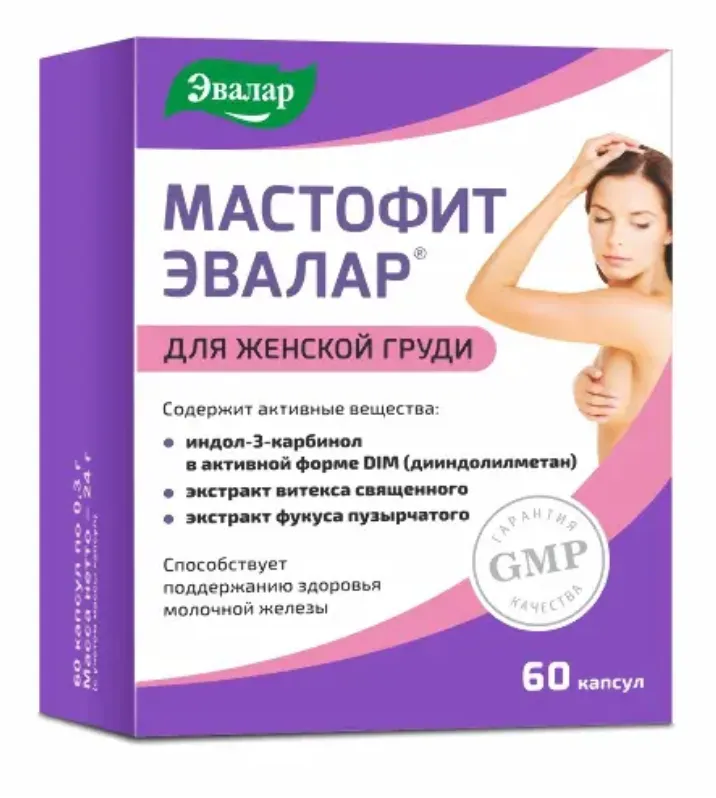 Мастофит Эвалар капсулы – это негормональный растительный комплекс с улучшенным ингредиентным составом усиленного действия, который способствует поддержанию здоровья молочных желез, профилактике мастопатии и новообразований в молочных железах; облегчению предменструального синдрома (ПМС); поддержанию баланса женских половых гормонов; нормализации женской репродуктивной системы.