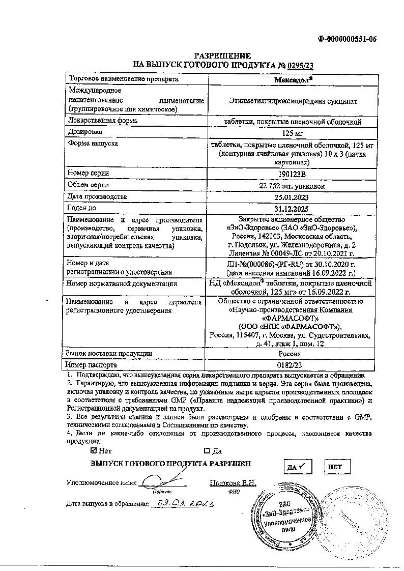 Мексидол® является ингибитором свободнорадикальных процессов, мембранопротектором, обладающим антигипоксическим, стресс-протективным, ноотропным, противосудорожным и анксиолитическим действием. Препарат повышает резистентность организма к воздействию различных повреждающих факторов (шок, гипоксия и ишемия, нарушения мозгового кровообращения, интоксикация алкоголем и антипсихотическими средствами /нейролептиками/).