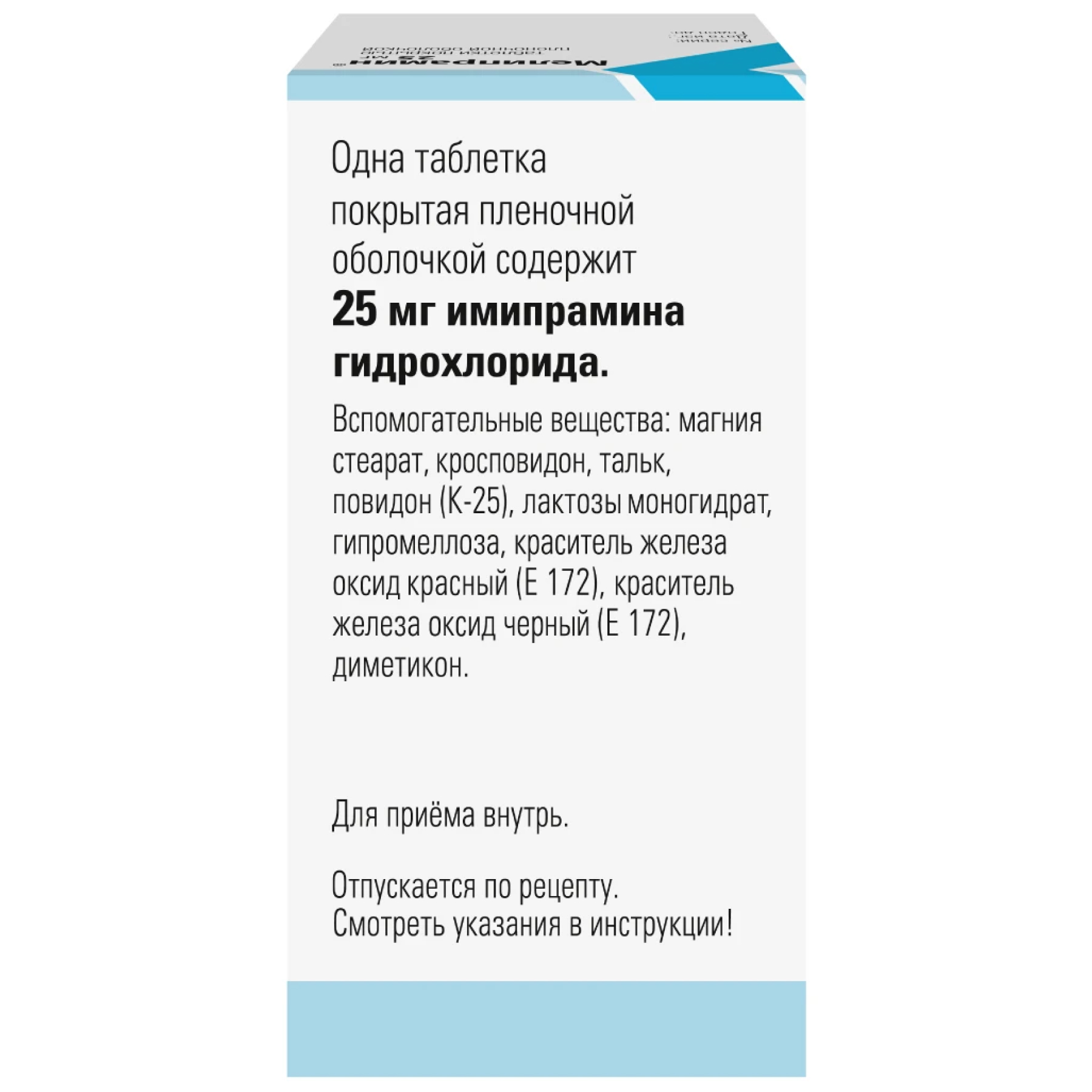 Не следует применять одновременно с симпатомиметическими средствами, в т.ч. с эпинефрином, эфедрином, изопреналином, норэпинефрином, фенилэфрином, фенилпропаноламином. Имипрамин можно применять не ранее чем через 14 дней после отмены ингибиторов МАО, начиная терапию с минимальной дозы. При одновременном применении имипрамина с алпразоламом или дисульфирамом требуется уменьшение дозы имипрамина.