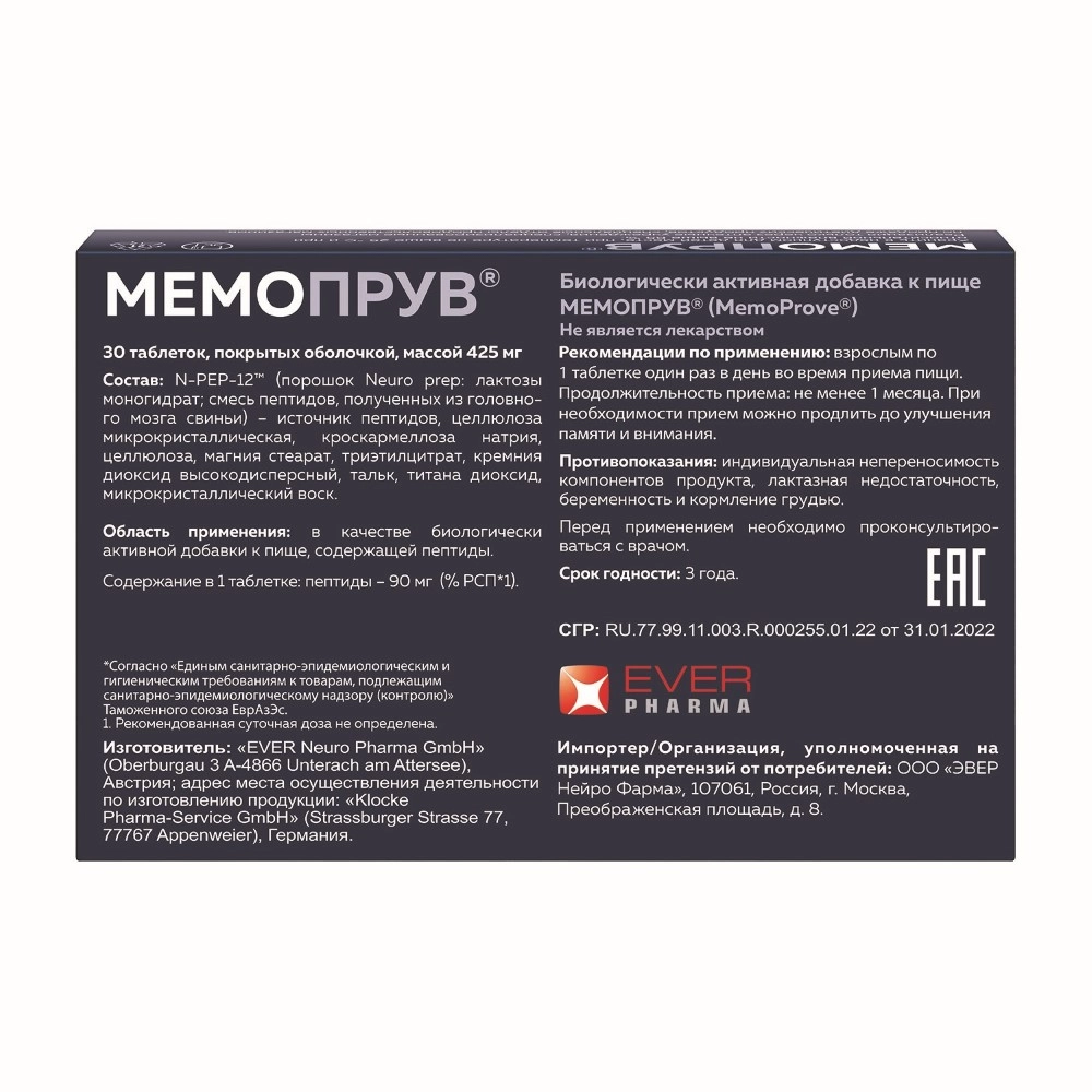 В состав МЕМОПРУВ® входит запатентованная смесь пептидов N-PEP-12™, способствующая поддержанию оптимального уровня когнитивных функций.