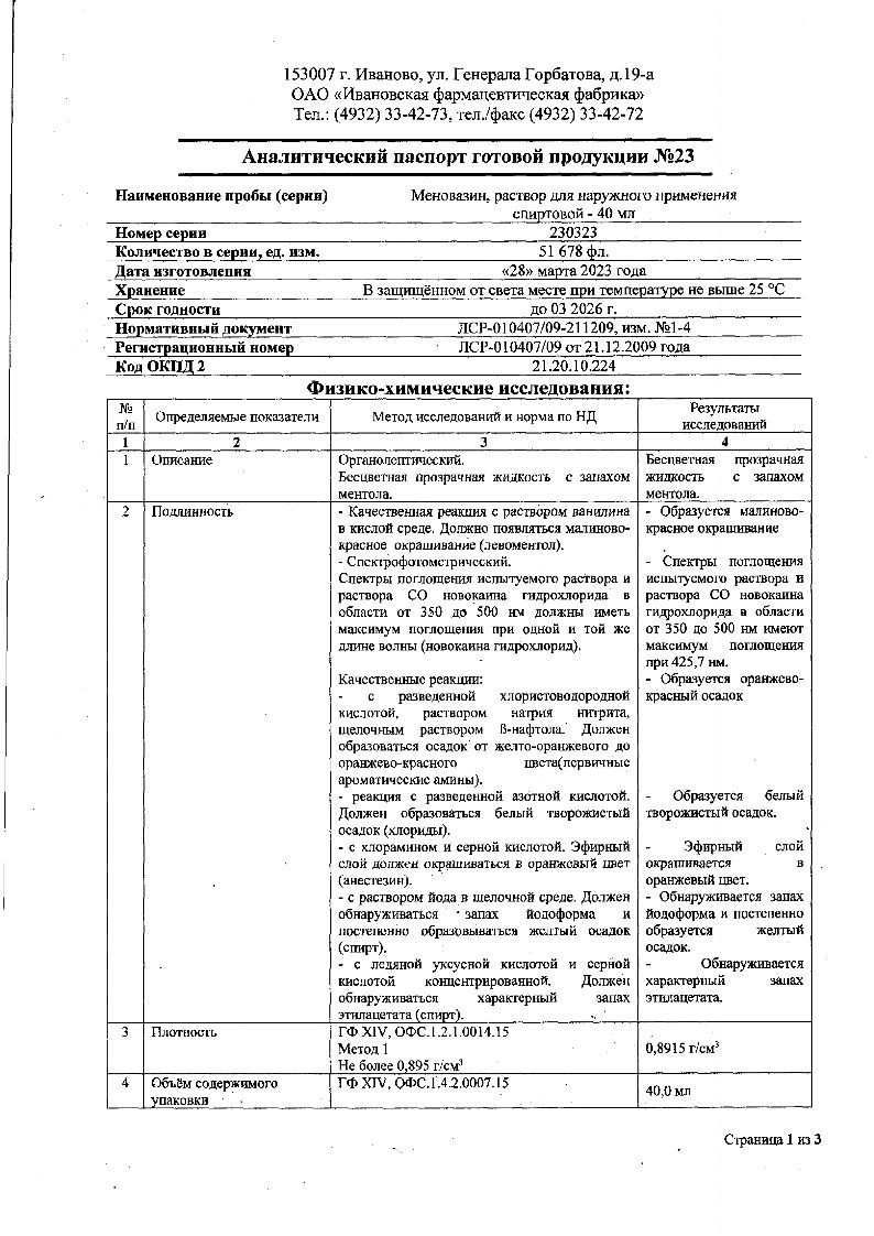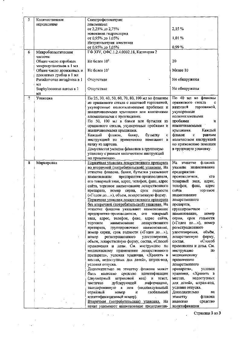 Активные вещества: левоментол - 2.5 г; прокаина гидрохлорид (новокаина гидрохлорид) - 1 г; бензокаин (анестезин) - 1 г;