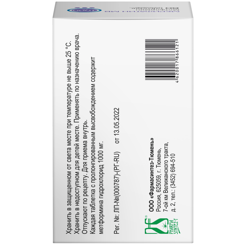 1 таблетка содержит: метформина гидрохлорид - 1000 мг.