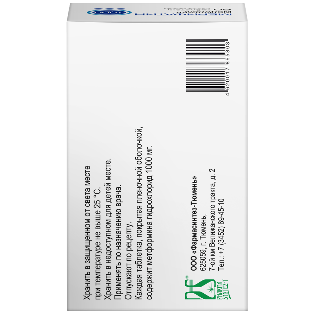 Каждая таблетка содержит 1000 мг метформина (в виде гидрохлорида).