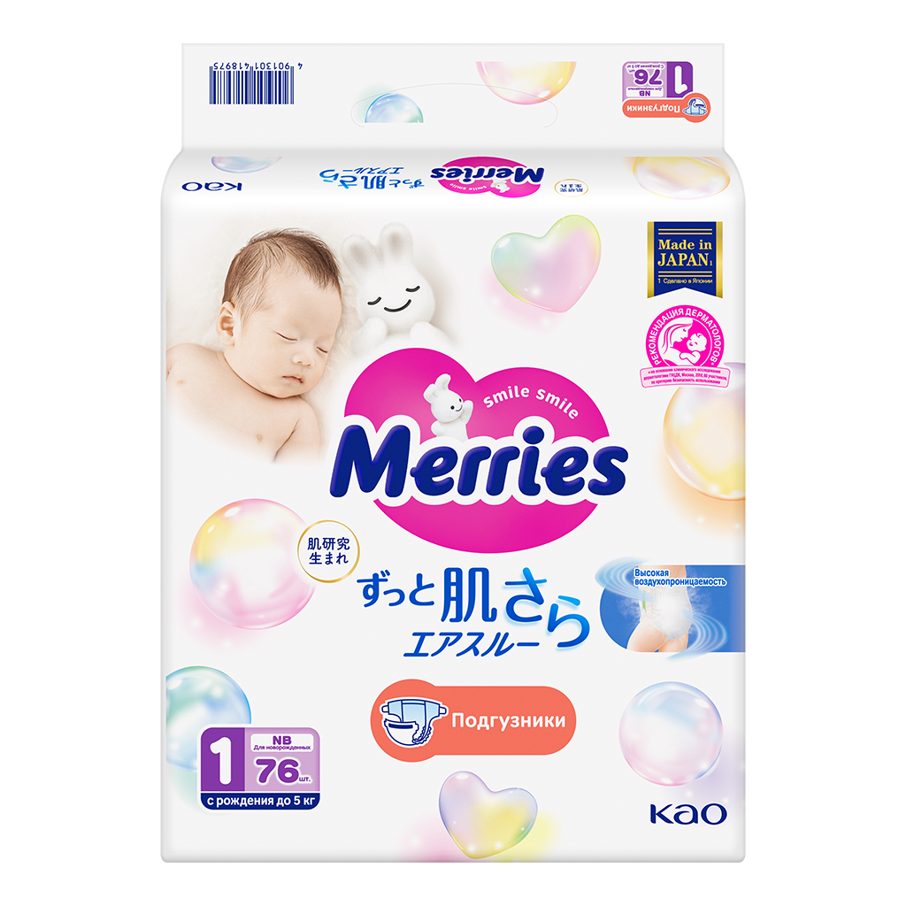 Детские одноразовые японские подгузники Merries (Меррис) для новорожденных малышей с весом до 5 кг (размер NB, 1) созданы с особенной заботой о коже и комфорте Вашего ребёнка.