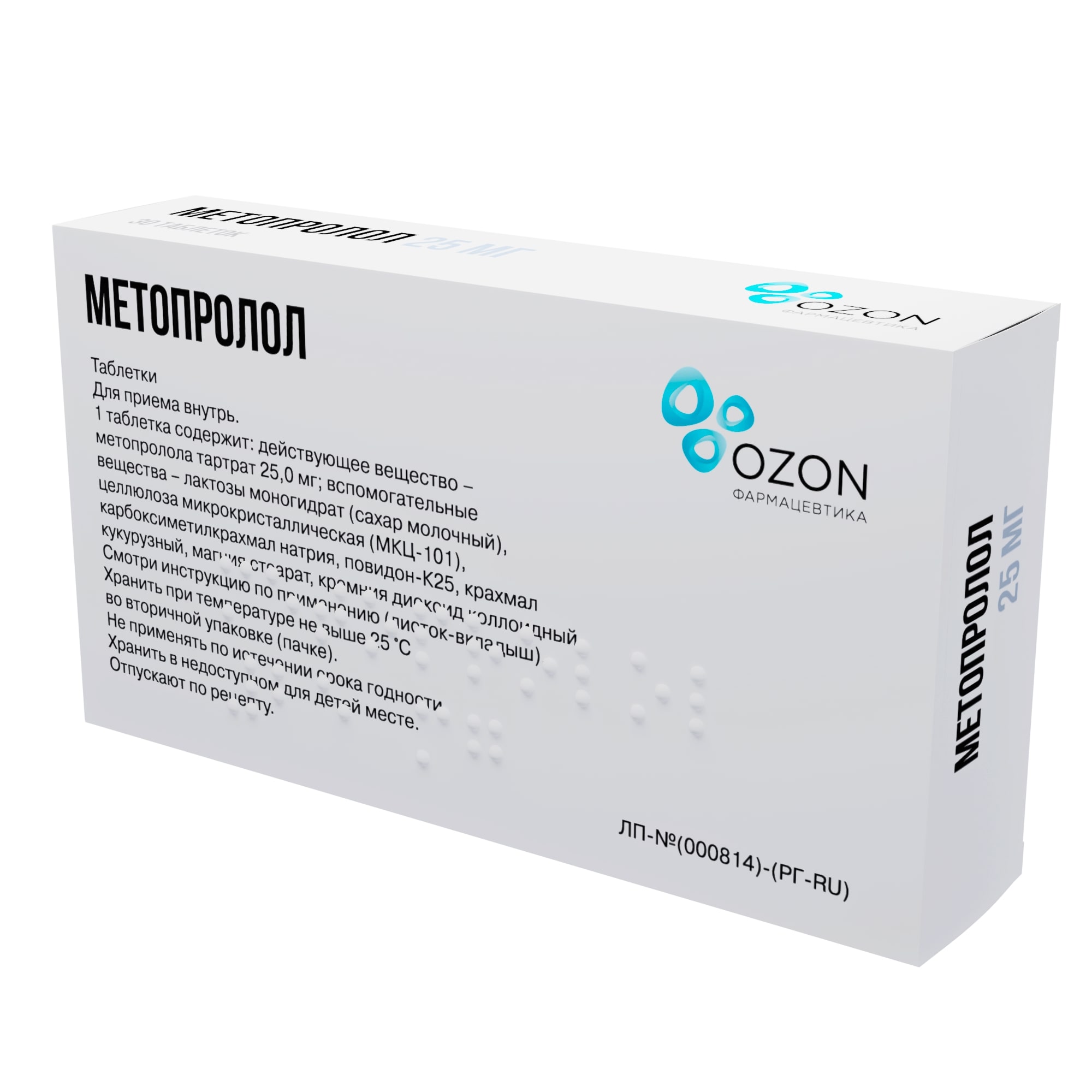 Действующее вещество: метопролола тартрат - 25,0 мг;