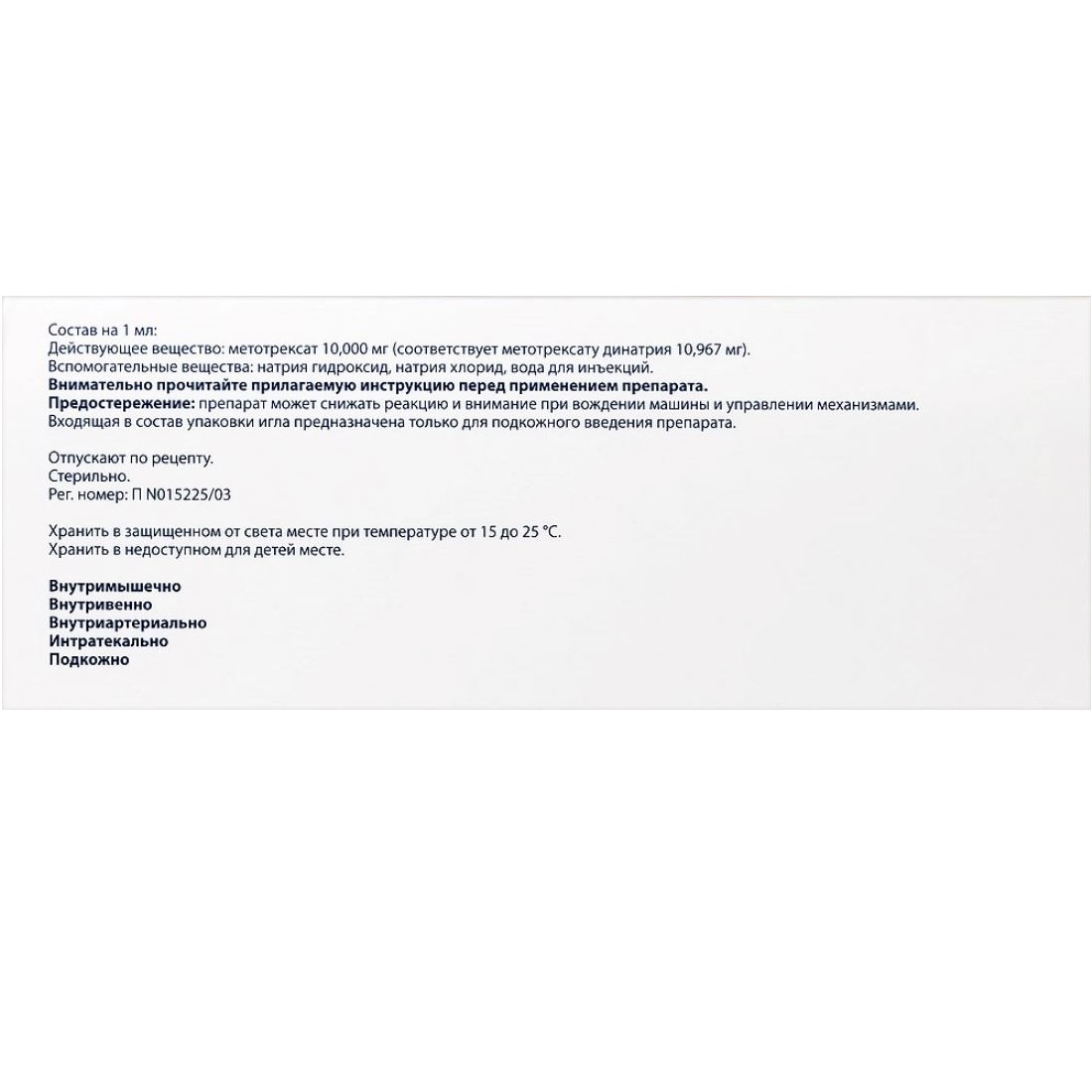 Не следует смешивать метотрексат с другими лекарственными средствами и растворителями.