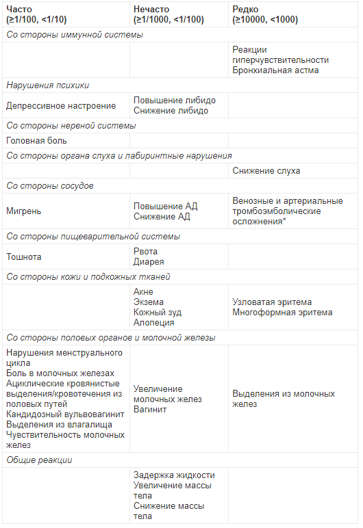 Депрессивное настроение и депрессия являются известной нежелательной реакцией при применении гормональных контрацептивов. Депрессия может быть серьезным расстройством и является известным фактором риска суицидального поведения и суицида. Женщинам следует посоветовать обратиться к своему врачу в случае появления изменений настроения и депрессивных симптомов, в том числе, вскоре после начала лечения.