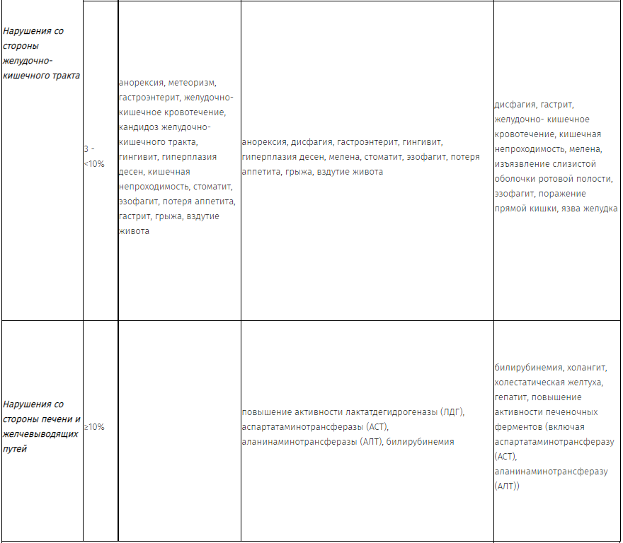 Со стороны органов пищеварения: колит (иногда цитомегаловирусной этиологии), панкреатит, отдельные случаи атрофии кишечных ворсинок.