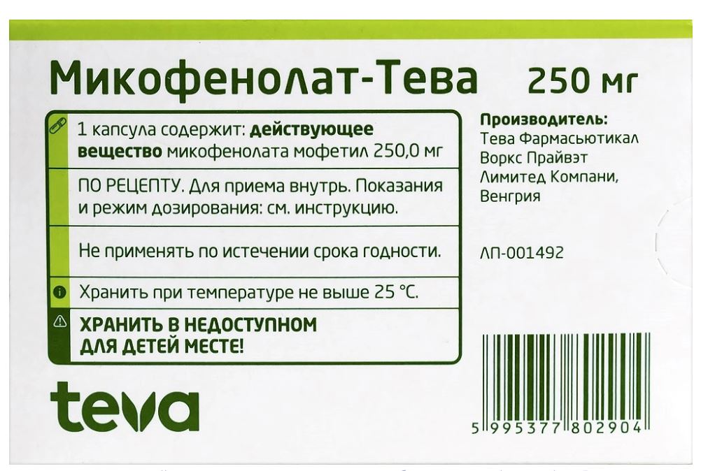 Препарат Микофенолат-Тева противопоказан во время беременности и в период грудного вскармливания. У больных с тяжелой ХПН следует избегать применения доз более 1 г 2 раза в сутки (см. разделы "Фармакокинетика в особых клинических случаях" и "Дозирование в особых случаях").