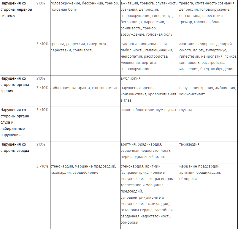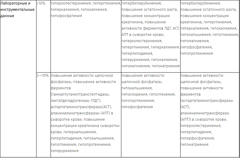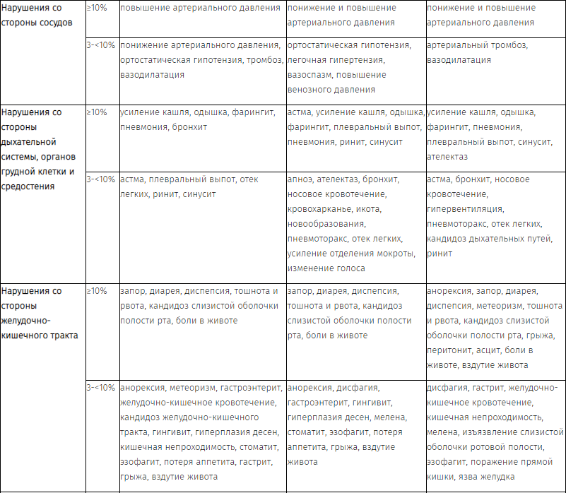 Нежелательные явления, отмеченные у ≥10% и у 3-10% пациентов, получавших ММФ в комбинации с циклоспорином и глюкокортикостероидами в контролируемых исследованиях по профилактике отторжения почечного трансплантата (3 исследования, данные по суточной дозе 2 и 3 мг), в контролируемом исследовании по пересадке сердца и в контролируемом исследовании по пересадке печени.