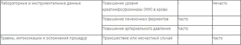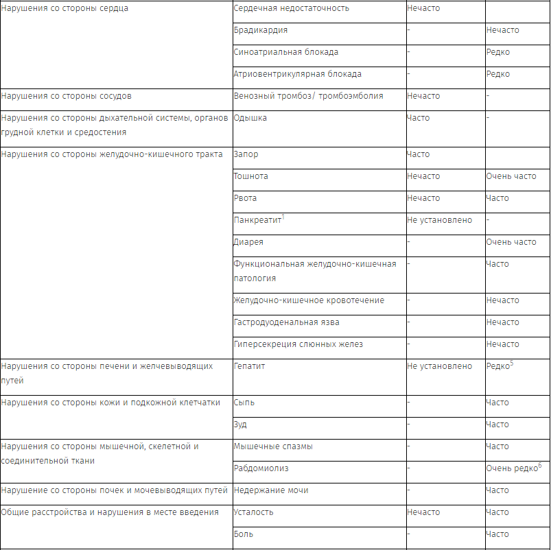 Нежелательные реакции классифицированы по клиническим проявлениям (в соответствии с поражением органов и систем органов) и по частоте встречаемости: очень часто (>1/10), часто (>1/100 до <1/10), нечасто (>1/1000 до 1/100), редко (>1/10000 до <1/1000), очень редко (<1/10000), частота не установлена (в настоящее время данные о распространенности нежелательных реакций отсутствуют).