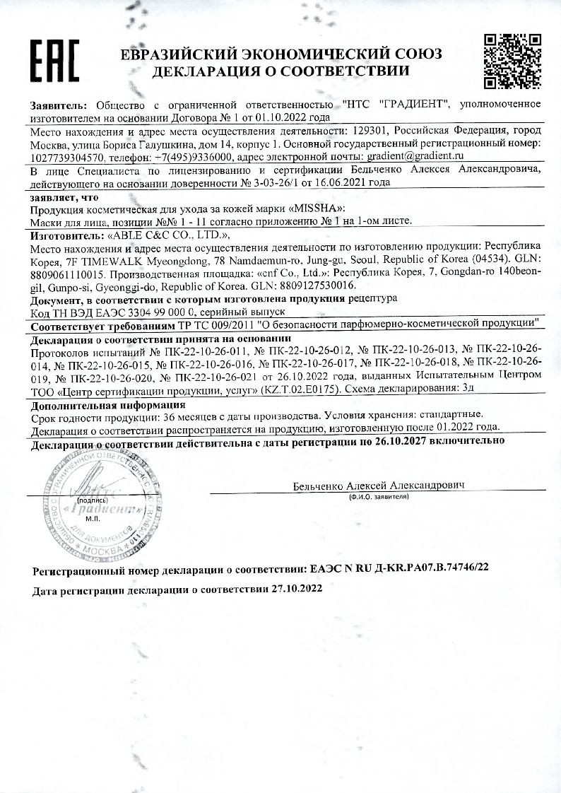 Полностью снимите макияж с кожи. Протрите тонером очищенную кожу. Равномерно распределите и оставьте маску на коже на 15-20 минут. Слегка помассируйте кожу для впитывания эссенции. Только для одноразового использования.
