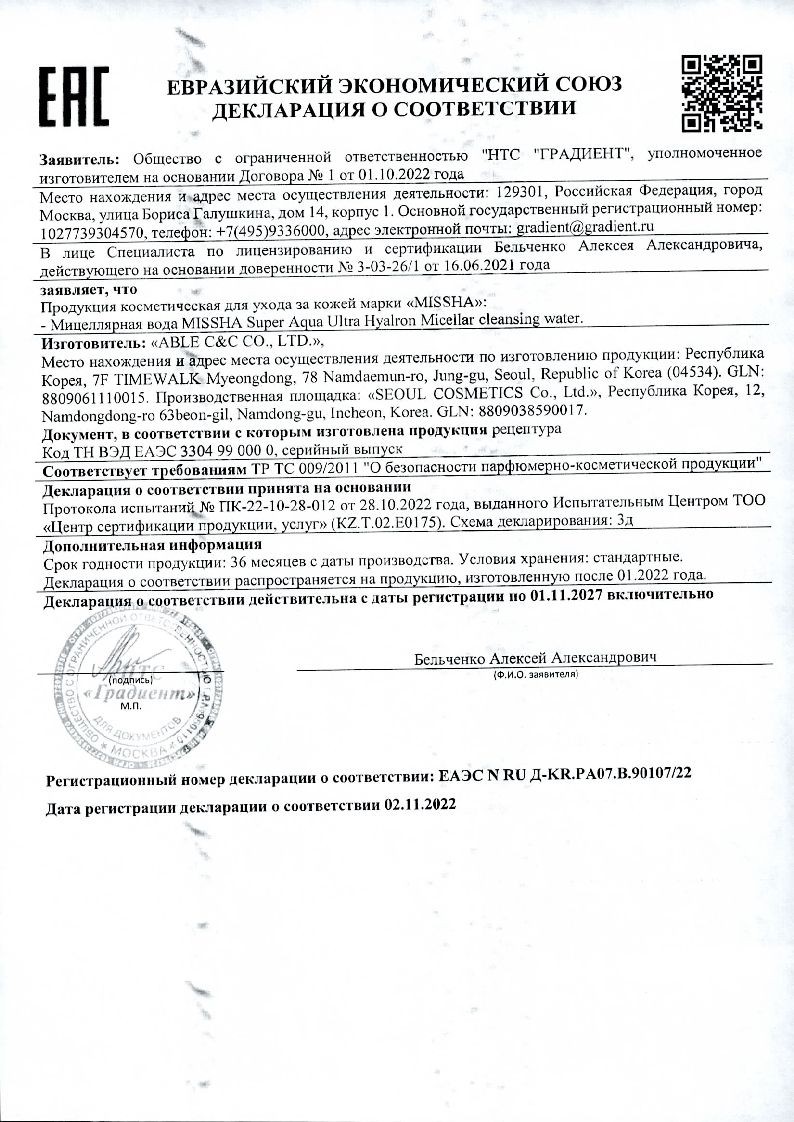 Мицеллярная вода с комплексом из 10 видов гиалуроновой кислоты высокой степени очистки, которая обеспечивает долгое увлажнение кожи после демакияжа.