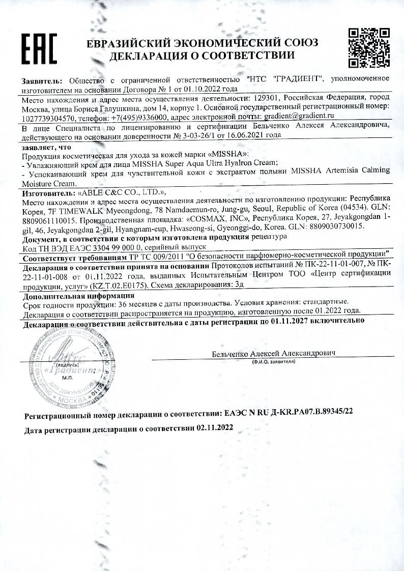 Экстракт полыни однолетней (60%), вода, глицерин, пропандиол, изопарафин c13-16, 1,2-гександиол, пентиленгликоль, изопарафин c12-14, экстракт vincetoxicum atratum, гидрогенизированный полидецен, винилдиметикон, каприлилметикон, акрилоилдиметилтаурат аммония/vp сополимер, бутиленгликоль, акрилаты/c10-30 алкилакрилатный кроссполимер, диметиконол, трометамин, пантенол, этилгексилглицерин, каприловый/каприновый триглицерид, сополимер глицерилакрилата/акриловой кислоты, лимонная кислота, гидрогенизированный лецитин, дикалия глицирризат, цитрат натрия, керамид np, натрий np стеароилглутамат, токоферол, ксантановая камедь, динатриевая соль эдта.