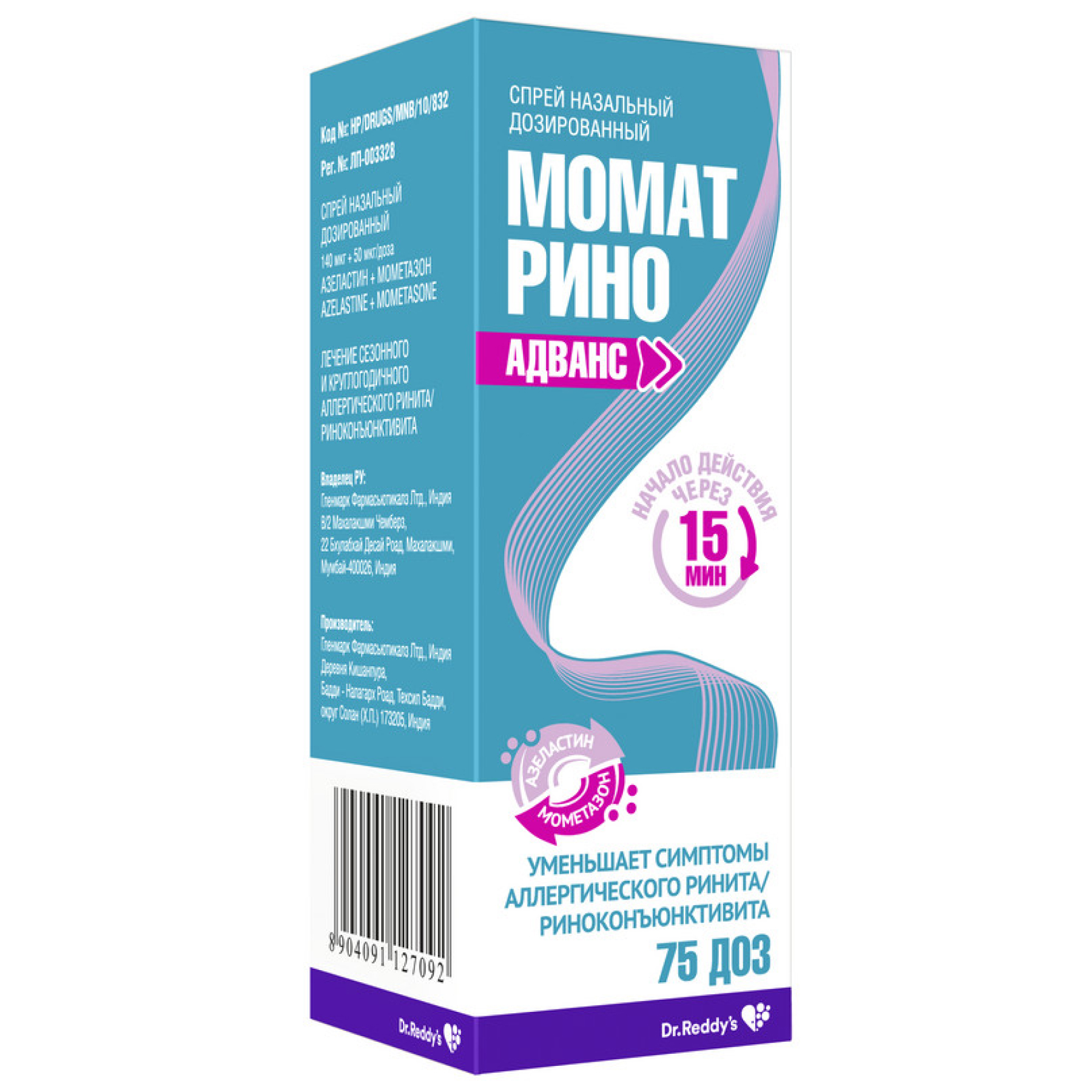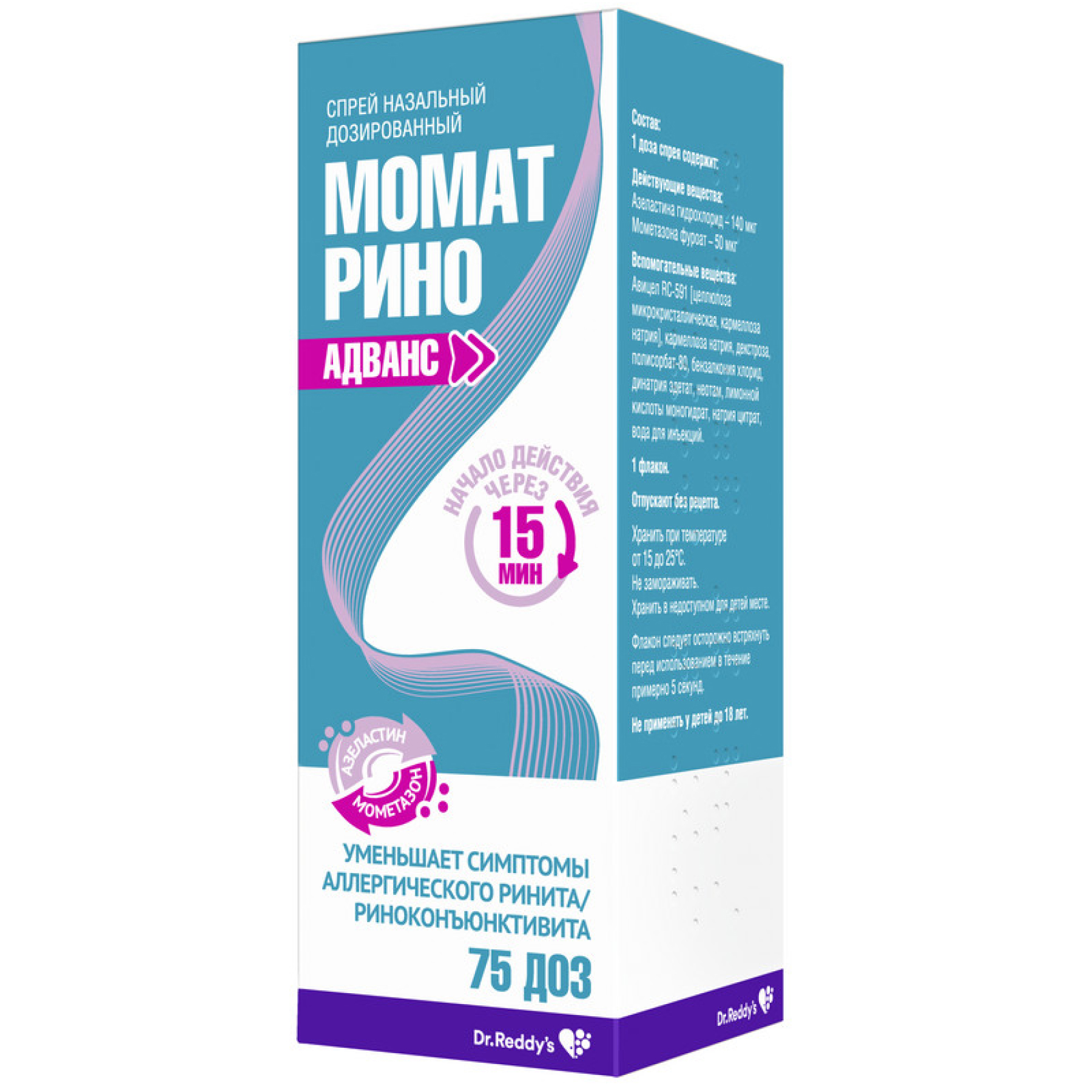 Активные вещества: азеластина гидрохлорид 140 мкг; мометазона фуроат 50 мкг.