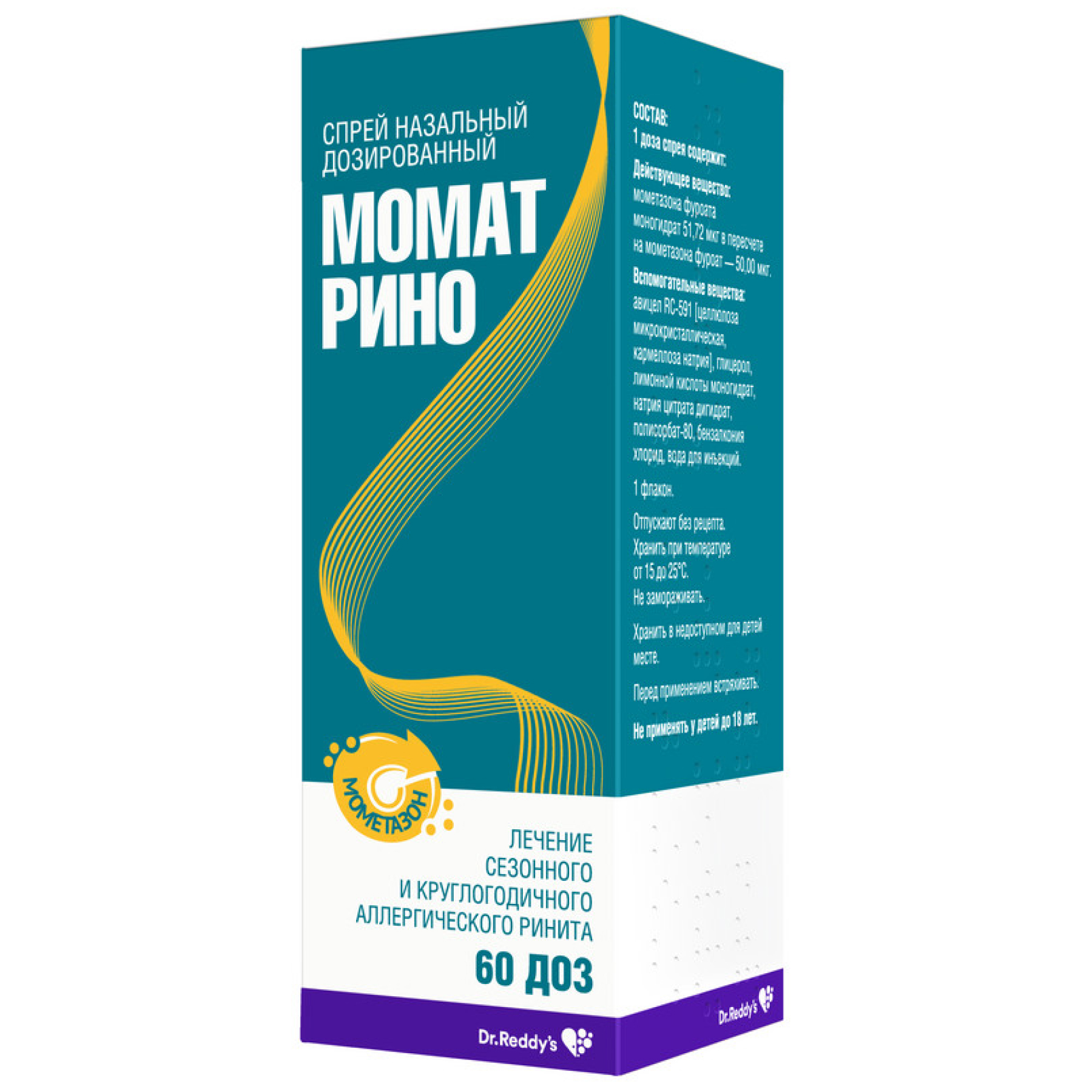После интраназальном применении системная биодоступность мометазона низкая, в частности, из-за малого всасывания и значительного пресистемного метаболизма при проглатывании мометазона. При применении в рекомендованных дозах концентрация мометазона в плазме находится около или ниже порога определения (50 пг/мл). Вследствие этого невозможно определить ни T1/2, ни Vd мометазона после ингаляции. Выводится с мочой и желчью.