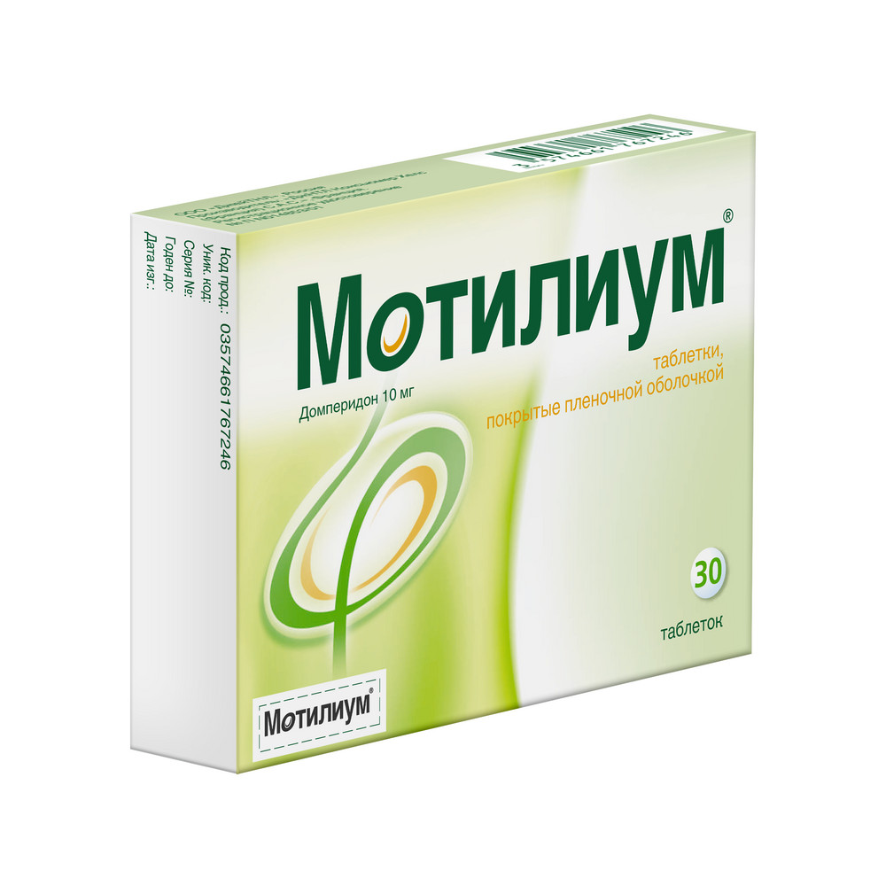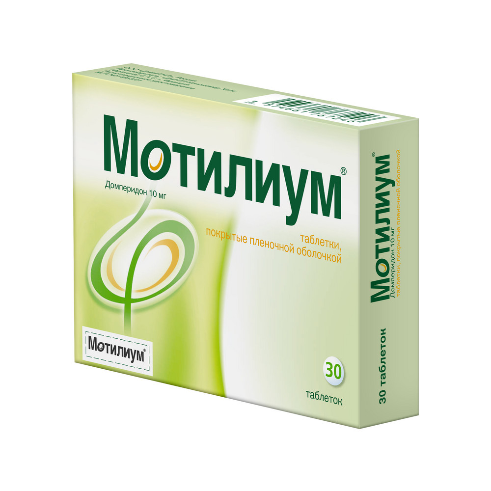 По данным клинических исследований Нежелательные реакции, наблюдавшиеся у ? 1% пациентов, принимавших МОТИЛИУМ?: депрессия, тревога, снижение или отсутствие либидо, головная боль, сонливость, акатизия, диарея, сыпь, зуд, увеличение молочных желез/гинекомастия, боль и чувствительность в области молочных желез, галакторея, нарушения менструального цикла и аменорея, нарушение лактации, астения. Нежелательные реакции, наблюдавшиеся у < 1% пациентов, принимавших МОТИЛИУМ?: гиперчувствительность, крапивница, отек молочных желез, выделения из молочных желез. Приведенные ниже нежелательные эффекты классифицировали следующим образом: очень часто (? 10 %), часто (? 1 %, но < 10 %), нечасто (? 0,1 %, но < 1 %), редко (? 0,01 %, но < 0,1 %) и очень редко (< 0,01 %), включая отдельные случаи. По данным спонтанных сообщений о нежелательных явлениях Нарушения со стороны иммунной системы. Очень редко: анафилактические реакции, включая анафилактический шок. Психические нарушения. Очень редко: повышенная возбудимость, нервозность, раздражительность. Нарушения со стороны нервной системы. Очень редко: сонливость, головная боль, головокружение, экстрапирамидные расстройства и судороги. Нарушения со стороны сердечно-сосудистой системы. Частота неизвестна: желудочковая аритмия*, желудочковая тахикардия по типу «пируэт», внезапная коронарная смерть*. Нарушения со стороны кожи и подкожных тканей. Очень редко: крапивница, ангионевротический отек. Нарушения со стороны почек и мочевыводящих путей. Очень редко: задержка мочи. Лабораторные и инструментальные данные. Очень редко: отклонения лабораторных показателей функции печени, гиперпролактинемия. *В некоторых эпидемиологических исследованиях было показано, что применение домперидона может быть связано с повышением риска развития серьезных желудочковых аритмий или внезапной смерти. Риск возникновения данных явлений более вероятен у пациентов старше 60 лет и у пациентов, принимающих препарат в суточной дозе более 30 мг. Рекомендовано применение домперидона в наименьшей эффективной дозе у взрослых и детей. Нежелательные реакции, выявленные в ходе пострегистрационных клинических исследований Нарушения со стороны иммунной системы. Частота неизвестна: анафилактические реакции, включая анафилактический шок. Психические нарушения. Нечасто: повышенная возбудимость, нервозность. Нарушения со стороны нервной системы. Часто: головокружение. Редко: судороги. Частота неизвестна: экстрапирамидные расстройства. Нарушения со стороны сердечно-сосудистой системы. Частота неизвестна: желудочковая аритмия*, желудочковая тахикардия по типу «пируэт», внезапная коронарная смерть*. Нарушения со стороны желудочно-кишечного тракта. Частота неизвестна: сухость во рту. Нарушения со стороны кожи и подкожных тканей. Частота неизвестна: ангионевротический отек. Нарушения со стороны почек и мочевыводящих путей. Нечасто: задержка мочи. Лабораторные и инструментальные данные. Нечасто: отклонения лабораторных показателей функции печени. Редко: гиперпролактинемия. *В некоторых эпидемиологических исследованиях было показано, что применение домперидона может быть связано с повышением риска развития серьезных желудочковых аритмий или внезапной смерти. Риск возникновения данных явлений более вероятен у пациентов старше 60 лет и у пациентов, п