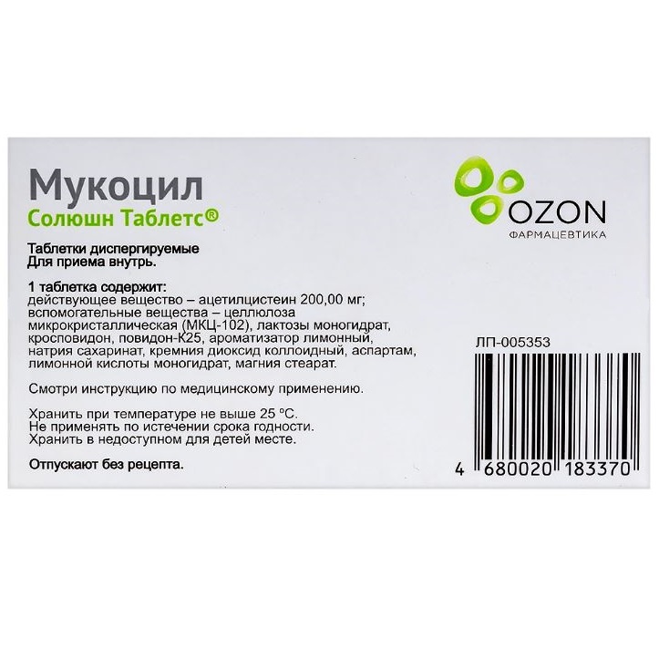 Мукоцил Солюшн таб дисперг 200мг №20 (арт. 10007738) Цену уточняйте по телефону в интернет аптеке в Москве и Московской области — Aptstore