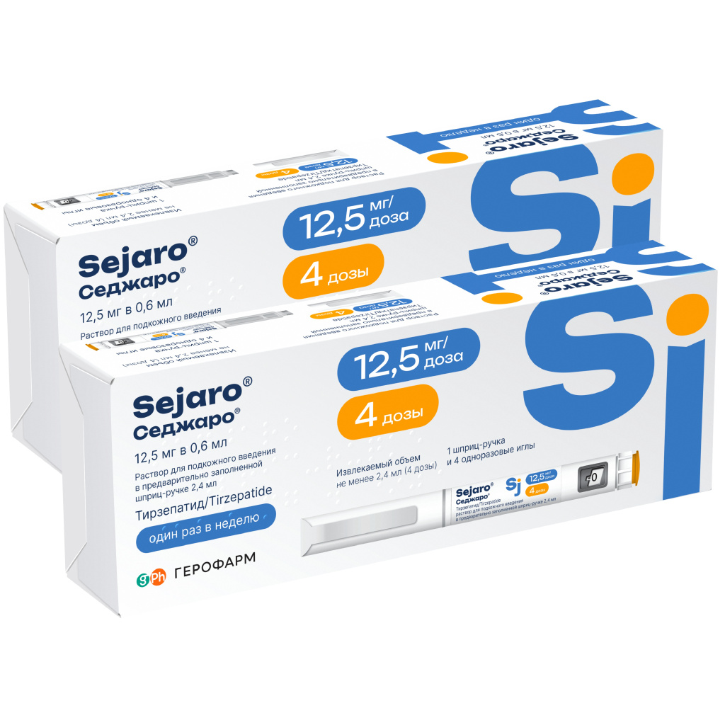 Набор 2 уп. Седжаро 12,5 мг/доз 2,4 мл 1 шприц-ручка + 4 иглы (арт. S1526771) купить по цене 25 844 ₽ в интернет аптеке в Москве и Московской области — Aptstore