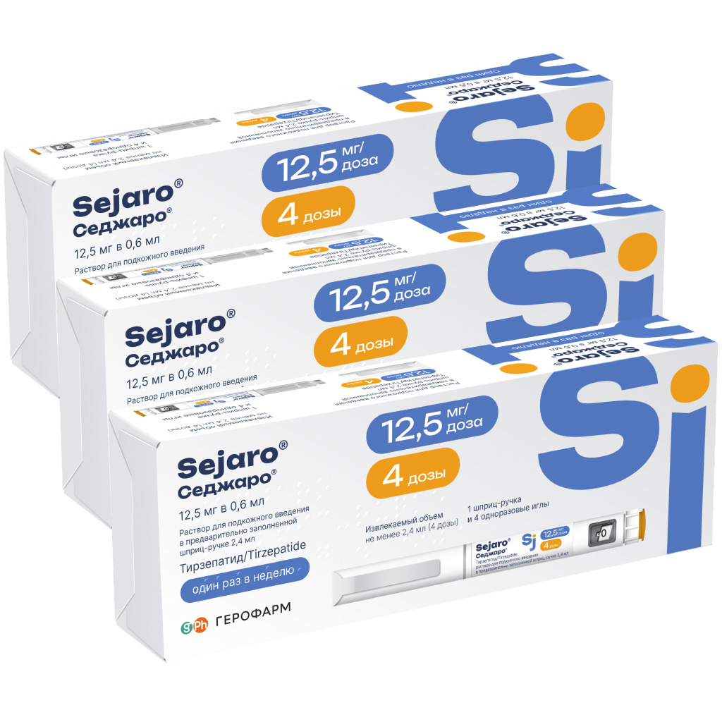Набор 3 уп. Седжаро 12,5 мг/доз 2,4 мл 1 шприц-ручка + 4 иглы (арт. S1526781) купить по цене 38 266 ₽ в интернет аптеке в Москве и Московской области — Aptstore