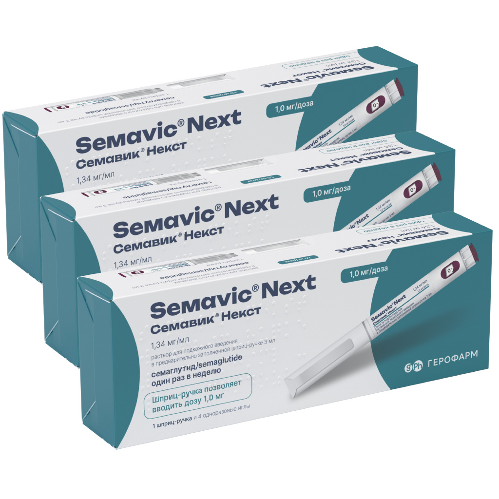 Набор 3 уп. Семавик Некст 1 мг/доза 3 мл 1 шприц-ручка + 4 иглы (арт. S1526641) купить по цене 12 700 ₽ в интернет аптеке в Москве и Московской области — Aptstore