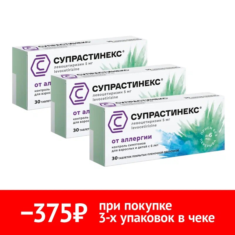 Набор 3 уп. Супрастинекс 30 таб (арт. S151444) купить по цене 1 395 ₽ в интернет аптеке в Москве и Московской области — Aptstore